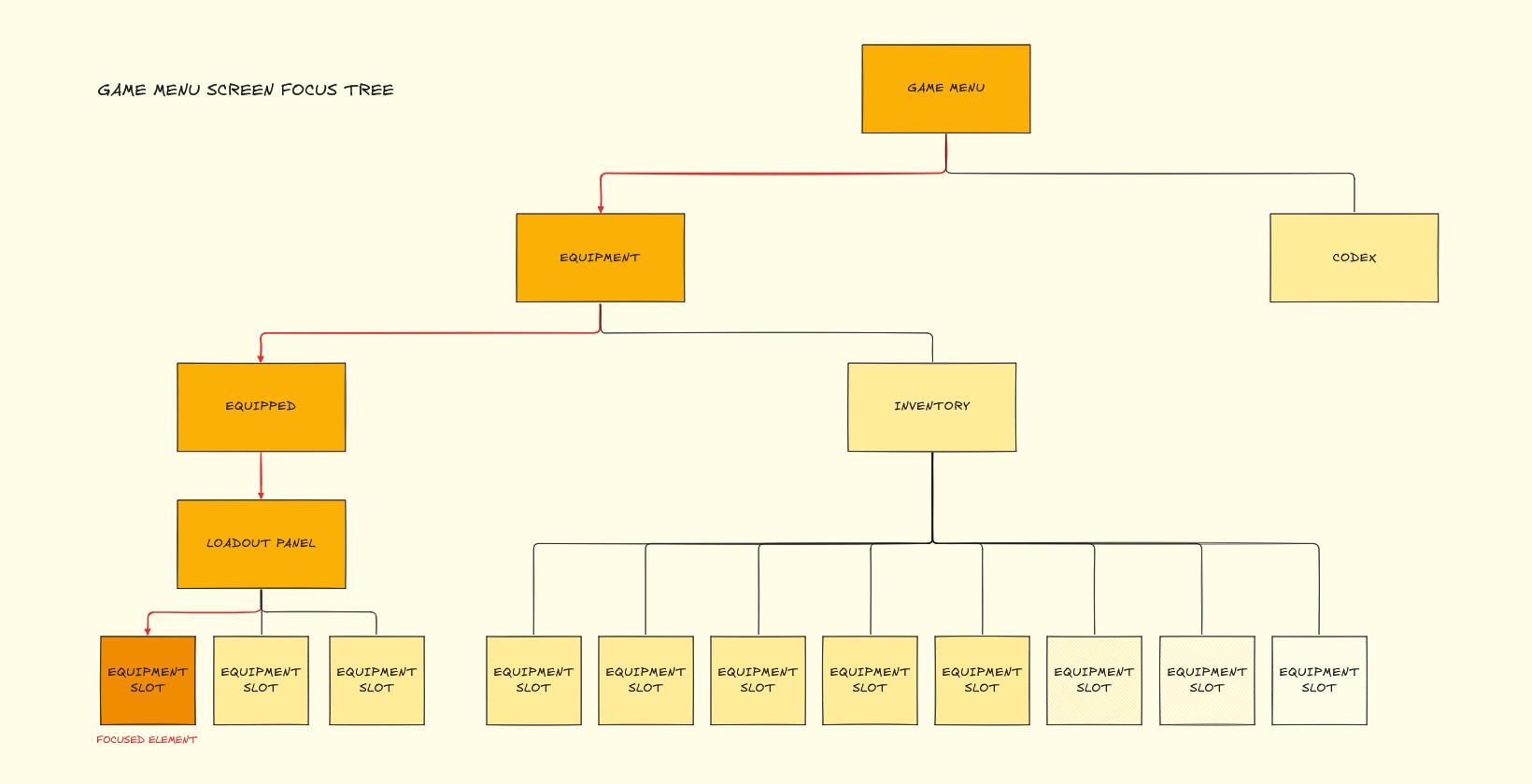 In our system, focus is managed consistently across the UI by making every screen extend our custom FoxtaleCommonActivatableBase, which in turn extends CommonActivatableWidget. This base class handles automatic focus setting to the defined Desired Focus Target when the screen is activated. We rely on Common UI Get Desired Focus Target while generally avoid calling Set Focus function directly on leaf widgets, preventing conflicts that could break the focus tree.